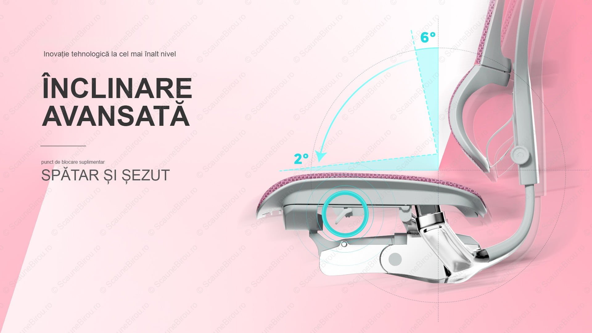 ✓ Funcție suplimentară de înclinare avansată cu 6 grade a spătarului în tandem cu 2 grade șezutul.