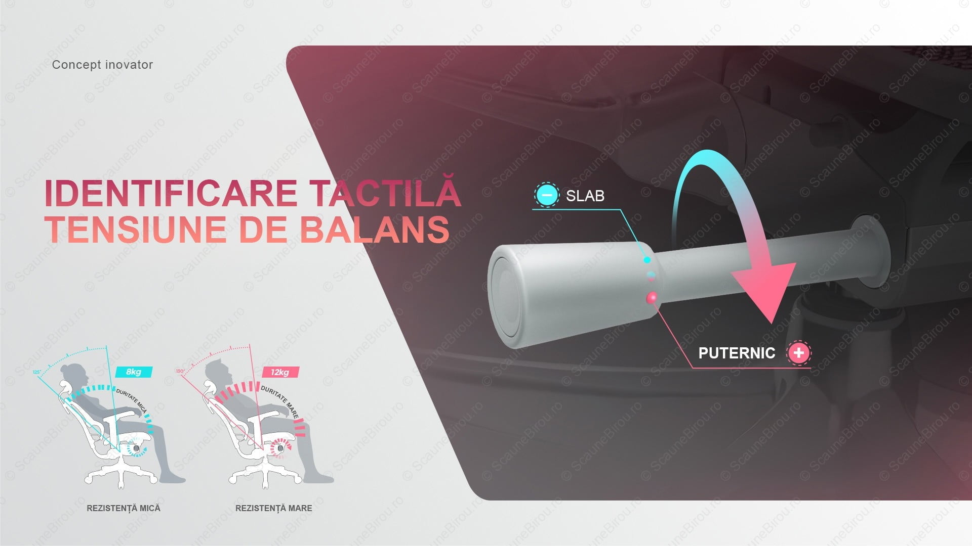 ✓ Balans cu posibilitate de blocare, pentru a se păstra unghiul de înclinare favorit.