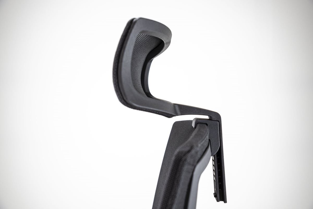 Tetieră tapițată cu mesh, reglabilă pe înălțime, pentru relaxarea zonei cervicale în momentele de pauză.